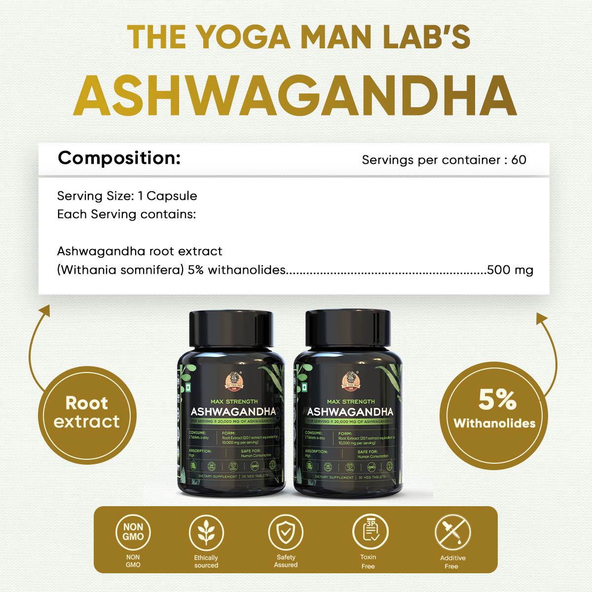 The Yoga Man Lab’s Ashwagandha Extract Tablets are standardized high-withanolide tablets designed for stress support, stamina, hormone balance and recovery. Lab-certified, pesticide-free and export-ready, these tablets are suitable for daily use in adults seeking a clean label, science-backed adaptogen.