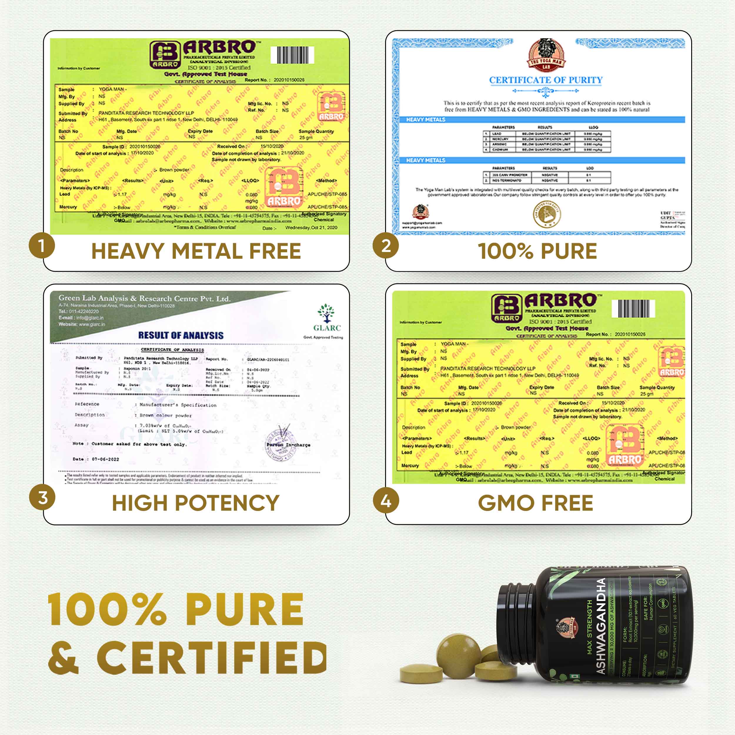 The Yoga Man Lab Ashwagandha Tablets are lab-tested for withanolides. Pure & pesticide-free, unlike low-grade tablets in market.