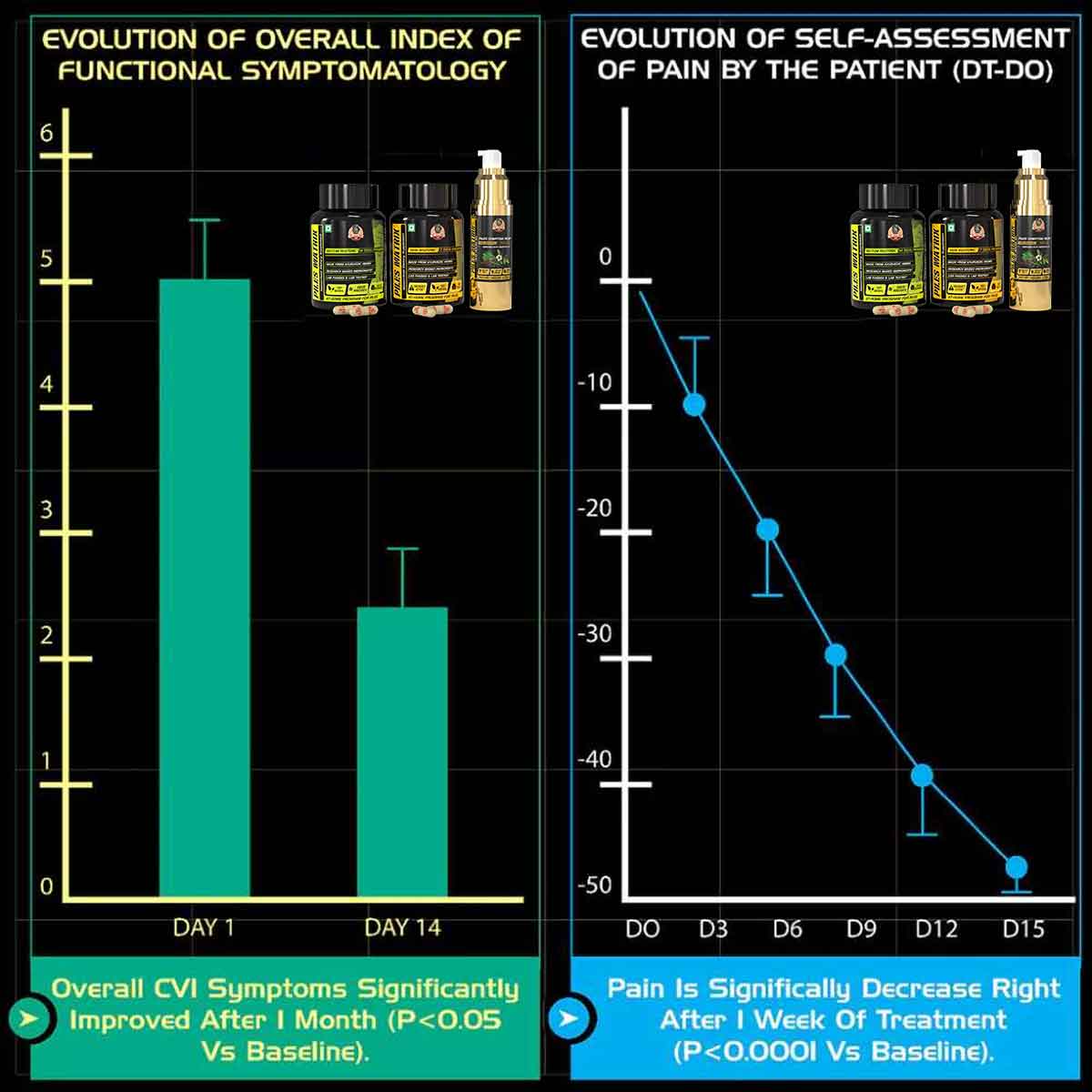 Reduction in swelling, pain, itching, and inflammation can be felt from the very next day.