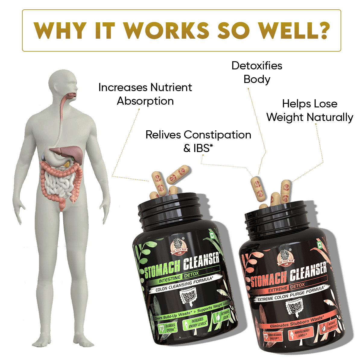 STOMACH CLEANSER- Intestine Detox Ayurvedic Supplement | 14 Days Program To Remove Toxins & Constipation | 100% Natural Health Care > Gut Health > Colon Detox > Supplement > Ayurvedic Constipation, IBS & Bowel Treatment The Yoga Man Lab